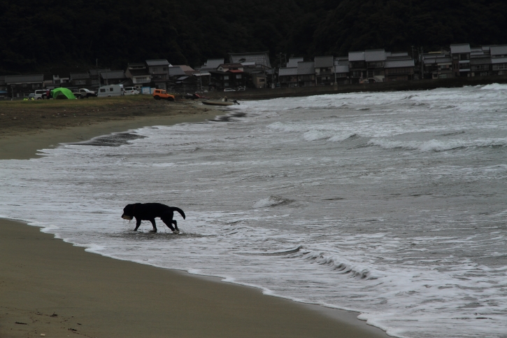 気比の浜。風も強くてクソ寒い中、わんこは元気にびしょ濡れになって遊んでました。