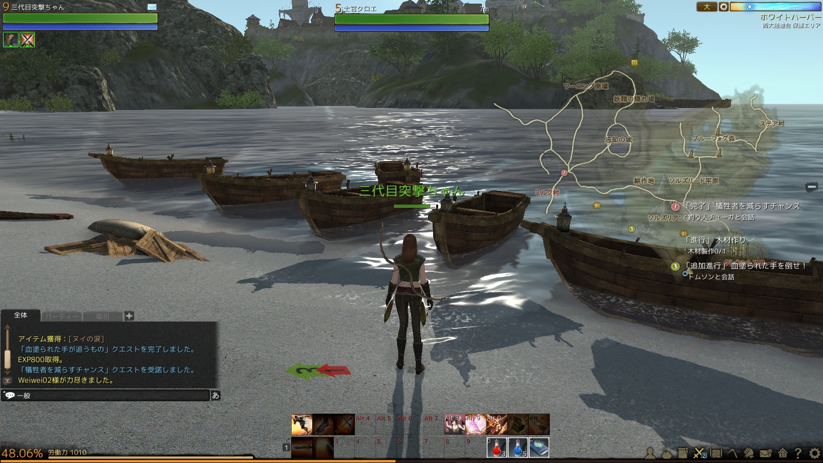 とりあえず、マイ畑を持つためにクエストをこなしていきます。なんか漁港を荒らす海賊をやっつけろみたいなクエ。