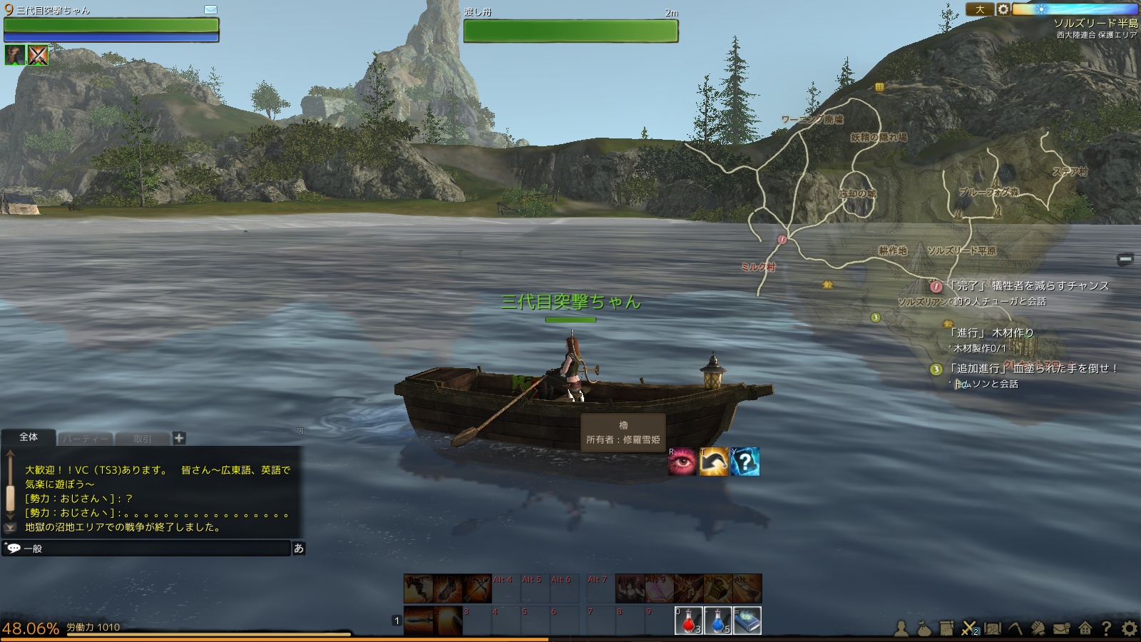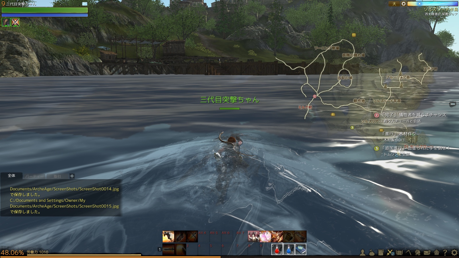 なんかここら辺のクエストで舟がもらえるらしいんですが、良く分からなかったので泳いでアジトに潜入します。