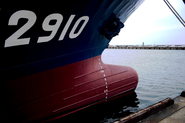 貨物船などの船の先端には、バルバス・バウ(球状艦首)と呼ばれる形をしているものがある。