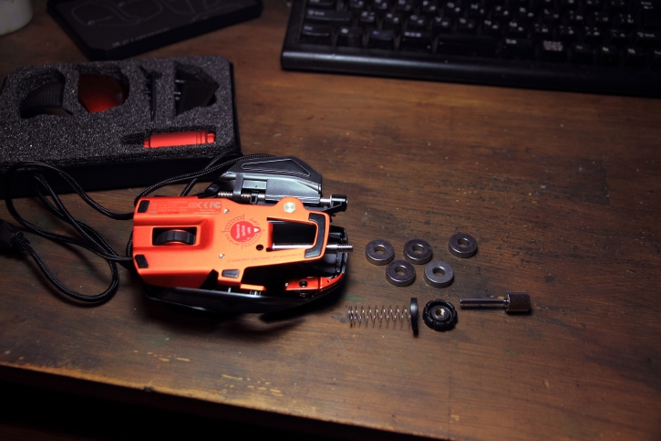 んで、もうあからさまにトランスフォームしそうな外見に違わず、パームレストとクリックボタンの距離とか、サイドボタンの位置とか、親指の角度とかを細かく調整できます。その辺を詳しくやりだすとキリが無いので